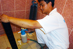 洗浄に使用可能な場所をお伺いし、取り外した部品を薬剤で洗浄します。