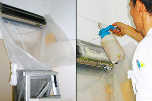 ケミカルウォッシュは薬剤を使用して室内機の冷却コイル、ファンを洗浄します。