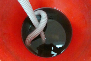 バキュームクリーナーを使って排水管の汚れを吸い取ります。