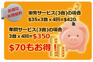 TOYOエアコンでは、お得な年間契約でのメンテナンスサービスを行っております。年間契約は2台からとなります。下記料金は3ヵ月毎、年間4回の料金です。