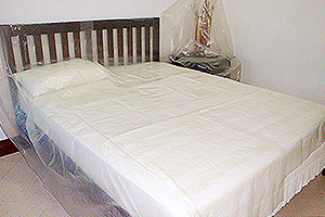 到着しましたら、メンテナンスの前にエアコン周辺の家具や家電品などをカバーして汚れがつかないようにします。