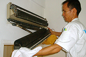 このサービスはコンドミニアム全体のエアコンを設置した業者が無料で請け負っており また、エアコンも新品ですのでフィルターの水洗いしかしませんし、サービス自体に来ない 場合も多々あるようです。