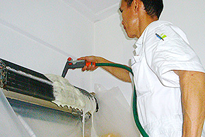 ケミカルウォッシュは薬剤を使用して室内機の冷却コイル、ファンを洗浄します。